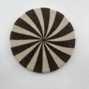 Add a bold twist to a French classic with the Berlingot Beret “The Spiral”. This eye-catching beret features a unique spiral color pattern—a playful evolution of the traditional two-tone style. The repeating colors create a psychedelic, candy-inspired swirl that brings originality and fun to any outfit.