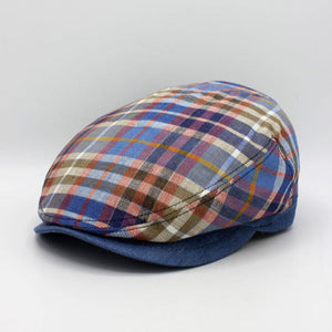 Made in Italy of 100% Italian Linen, this spring and summer cap is bright with its multicolored check pattern on top and blue brim and side panels.  The Cotton Liner makes for a great warm weather cap!
