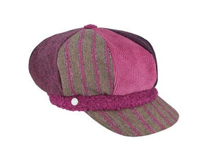 Women's gavroche cap with patterned inserts and MF pin. Cap with arty and romantic patterns. Warm, whimsical, and always trendy, to enjoy the pleasures of winter.
