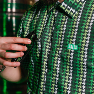 This ain’t your grandpa’s Hawaiian shirt. The No Pinch Club special edition Cheyenne Shaka brings legendary truck culture and Saint Paddy’s Day energy together in one loud, lucky statement piece. Inspired by the iconic houndstooth seat inserts of the ’69–’72 Chevy Super Cheyenne, this multi-shade green houndstooth pattern takes classic Americana and cranks the fun dial all the way up Hales Speed Shop style.
