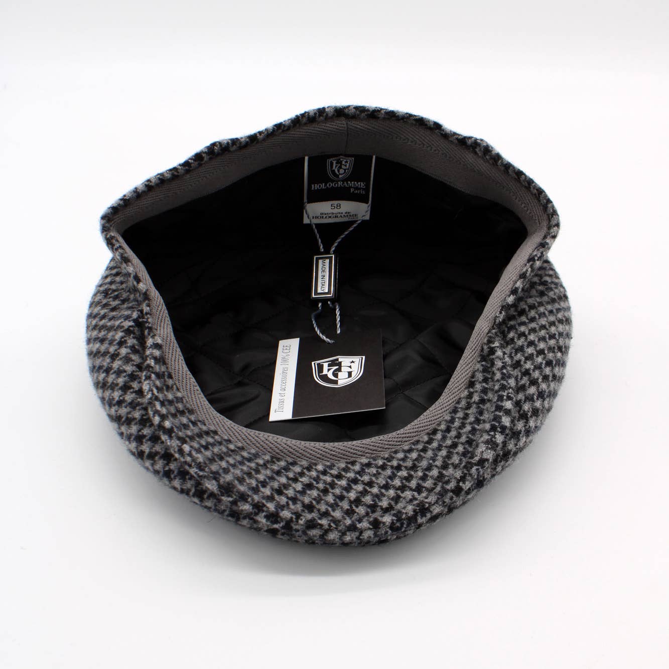 Hologramme Paris flat cap in a Gray Houndstooth wool.