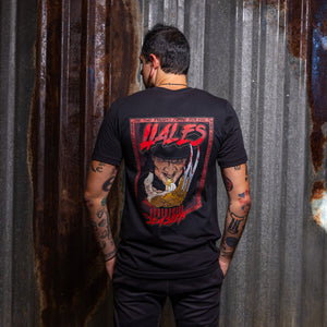 Up front, the chest keeps it simple: a blood-red Hales mark that says it all. Pair it with the flannel, cap, or wear it solo — either way, this tee is built for the ones who don’t play safe.