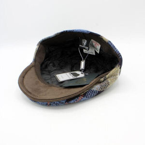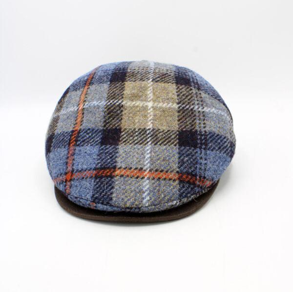 The "Beige Tartan" is a nod to the many wonderful Scottish clan tartans.  The wonderful fabric on this cap has a beige base with strong blues, browns, grays, and an orange line running through it!  It is a flat pub cap made in Italy from 100% Harris tweeds with a quilted liner!