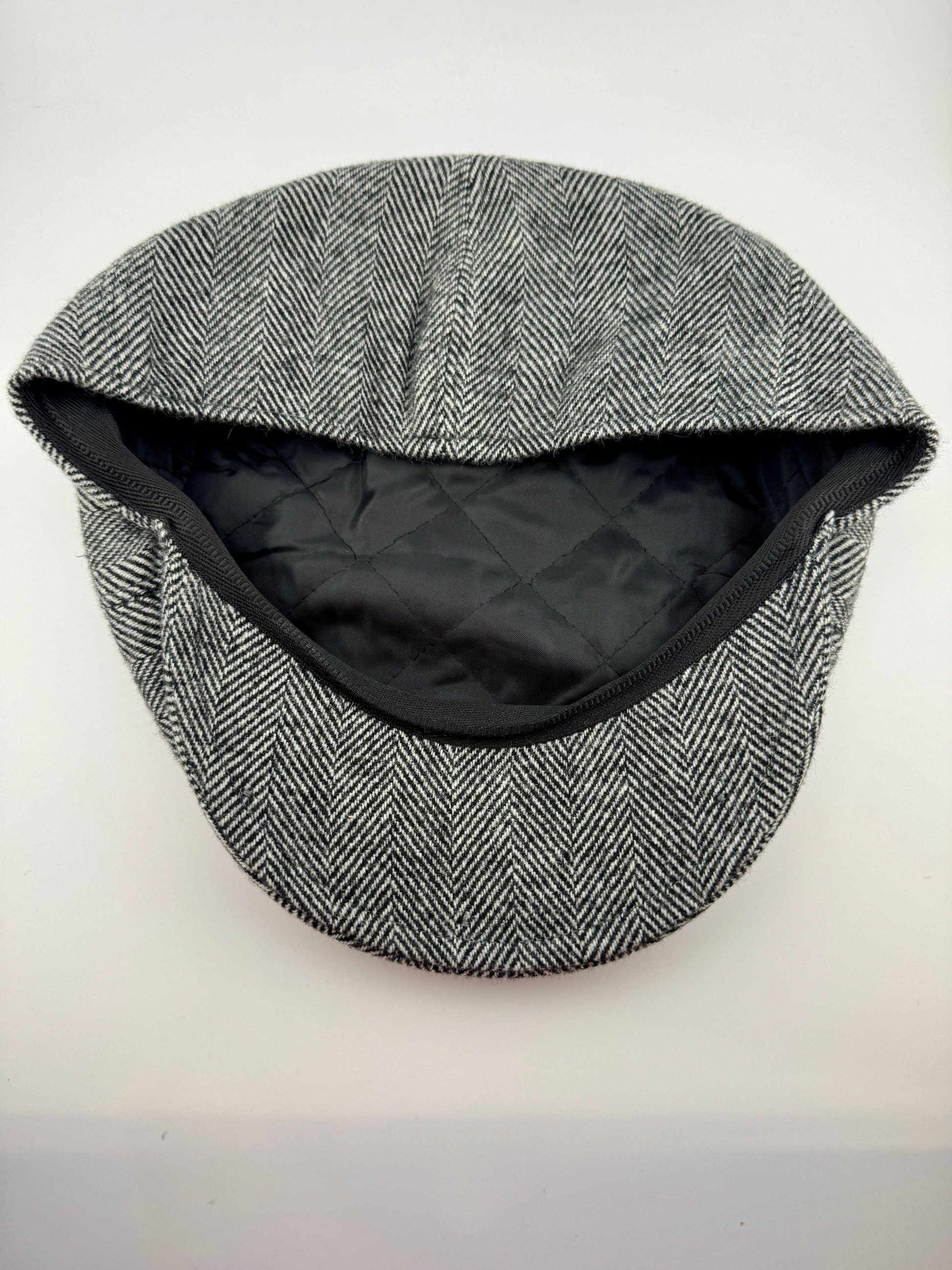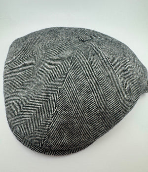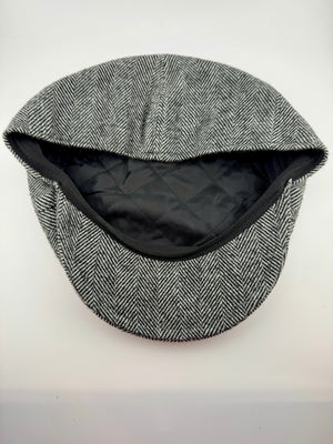 This gray Herringbone wool blend cap has a nice black and white contrast in the pattern.  *8 Panel newsboy cap made in Italy by Hologramme!