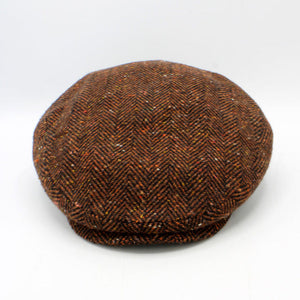 The Brick Red Fleck Herringbone Flat Cap is made from a headturning wool blend that has a deep brick red base with burst of pink, red, orange, and yellow flecks that provides interesting depth up close.  Flat panel Pub cap style. Quilted Liner.  Also available in an 8 panel newsboy shape.