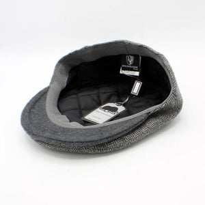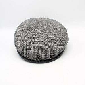 Classic Gray Herringbone wool blend cap with Solid Gray Brim from Hologramme Paris. Flat panel Pub cap style. Quilted Liner.