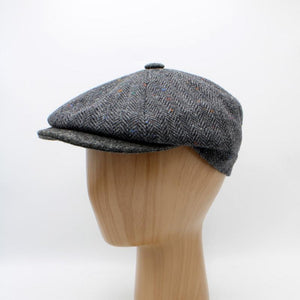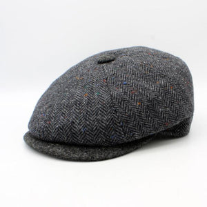 The "Garrison" - Dark Gray and Black Herringbone Newsboy Cap by Hologramme Paris