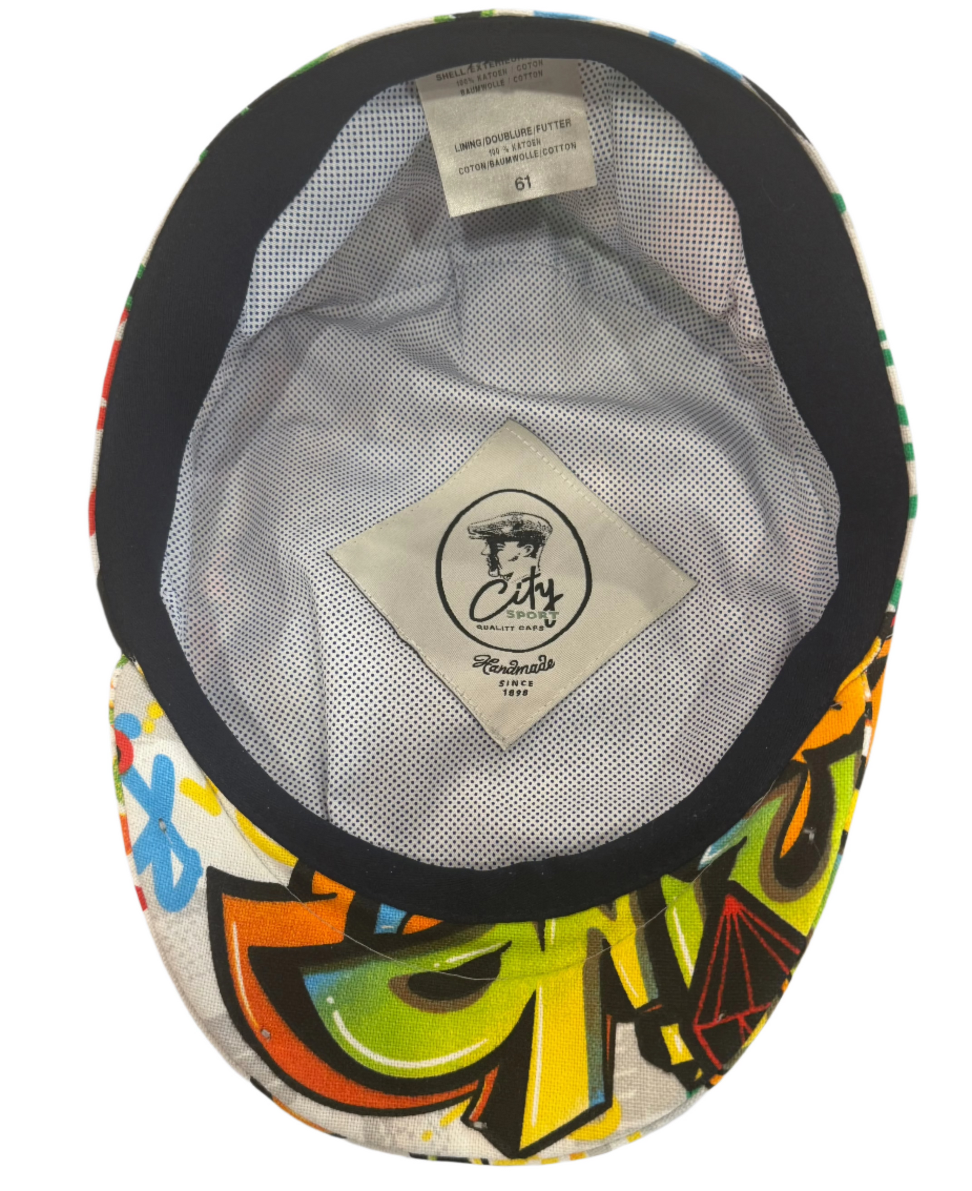 Make a bold statement with the Graffiti Legend Flat Cap by City Sport — a modern twist on a timeless classic. Crafted in Belgium from 100% cotton, this cap features an eye-catching graffiti print that blends urban edge with refined design.