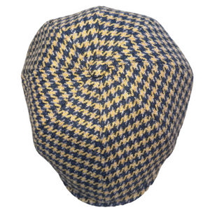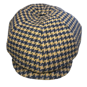Crafted in Italy by Alfonso d’Este for FunkyBrims, this striking newsboy features a blue-and-gold houndstooth weave that catches the light and turns heads. The 100% premium wool body offers rich texture and natural warmth, while a smooth satin liner adds an indulgent touch of comfort and polish.