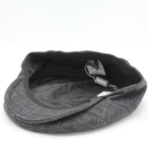 The "Matrix" is a unique cap.  This cotton/poly/wool blended Italian fabric is very soft, almost with a velvet feel to the touch.  It has a gray background with subtle purple and black lines that form a plaid pattern with a futuristic look up close.  It has been made into a flat pub cap for the fall and winter, expertly tailored in Italy!  Quilted liner for the cooler days!