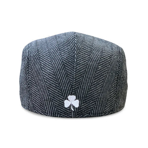 This cap has Boston Scally Co.'s signature single fit in grey herringbone with accent panels in Dorchester green and a white shamrock embroidery on the back.
