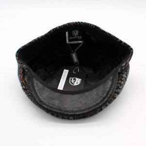 Earthy tones and heritage design come together in The "Stonewood Plaid" Flat Cap by Hologramme Paris. Expertly crafted in Italy from 100% Lana wool, this cold-weather cap features a striking plaid pattern in black, gray, and brown, highlighted with subtle orange pinstripes that add warmth and contrast.