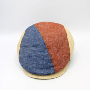 Make a bold seasonal statement with the "Summer Slant" by Hologramme Paris — a playful yet refined flat cap perfect for warmer days. This Italian-made cap features a slanted panel design in vibrant blue, red, and yellow, crafted from a breathable 75% linen / 25% cotton blend that keeps things cool, comfortable, and eye-catching.
