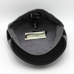 100% Italian Linen in gray for this great summer cap with black accents on the sides with a vent and the brim!