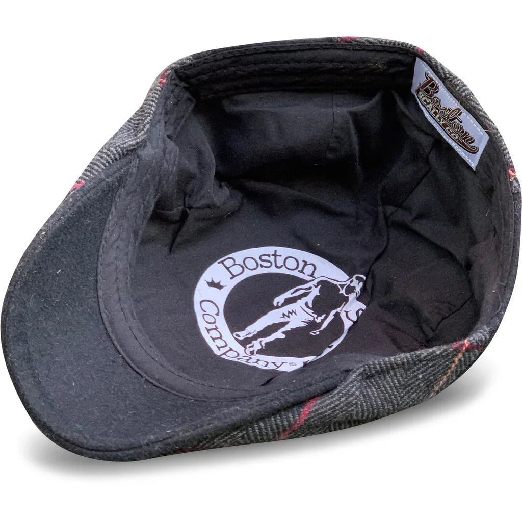 This single panel scally cap boasts a blended herringbone with a touch of plaid a contrasted wool panel.
