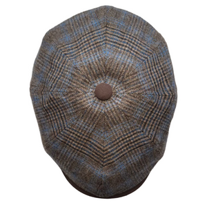 The Windsor Check Newsboy Cap by FunkyBrims is a study in craftsmanship and quiet sophistication. Woven in Italy from 100% pure wool, its soft brown-and-blue check pattern exudes understated elegance and versatility. The breathable cotton lining ensures lasting comfort, while the classic eight-panel silhouette and covered button crown pay homage to its heritage tailoring.