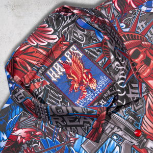 The We the People Shaka by Hales Legendary Flannels is the most intricate design they've ever dropped. Layered with bold graphics like “Don’t Tread on Me,” “Come and Take It,” “Liberty or Death,” and “We the People,” this short sleeve button-up is built for the ones who live wild and stand firm.